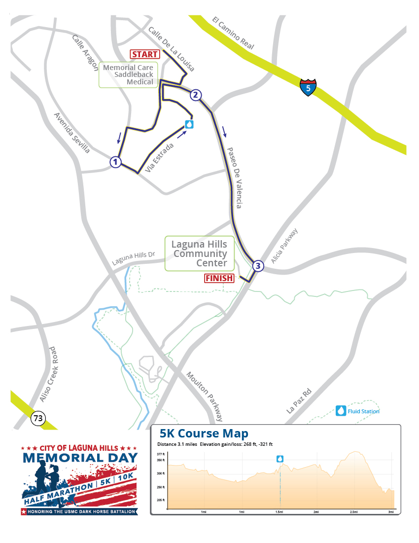 5K Run/Walk will travel through Laguna Woods Village and finish at the Laguna Hills Community Center.